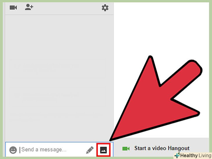 Обмінюйтеся зображеннями. ви можете відправляти картинки в Hangout-діалог за допомогою натискання на значок камери в правій частині поля чату, після чого відкриється вікно вибору зображень(комп'ютер), або меню вибору параметрів на мобільних пристроях.- Ви можете скористатися своєю веб-камерою або камерою телефону для того, щоб робити знімки і обмінюватися ними, або ж додавати фотографії з інших джерел, таких як пам'ять комп'ютера або телефону.