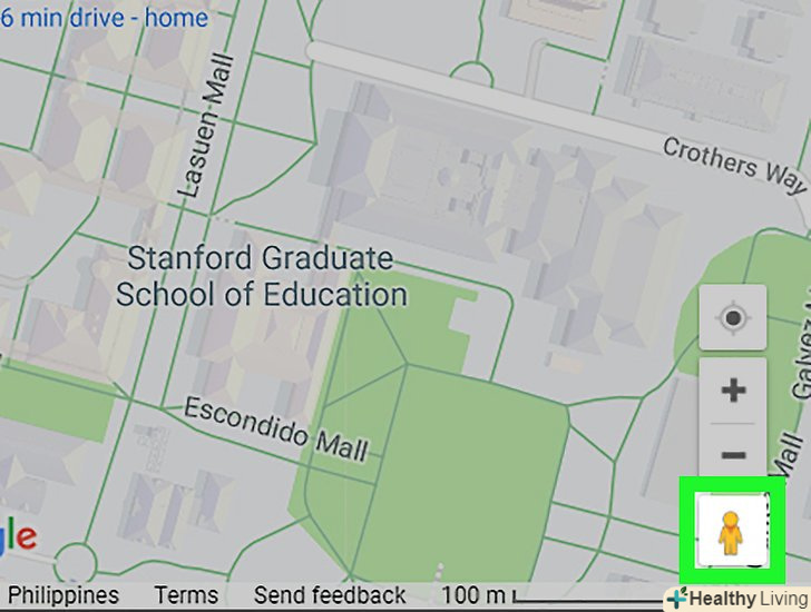 Перетягніть помаранчевий значок у вигляді чоловічка на потрібне місце на карті. цей значок розташований в нижньому правому куті екрану. Ви перейдете в режим "Перегляд вулиць".