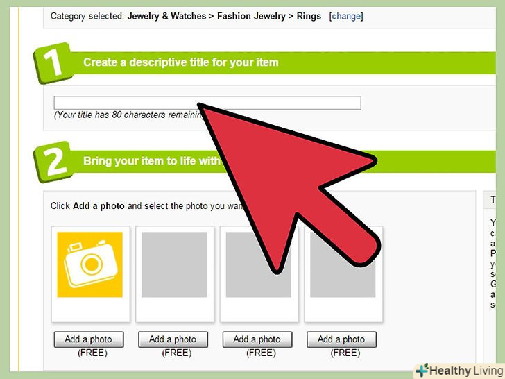 Зробіть хороші фотографії своїх прикрас. підберіть чистий фон і використовуйте хороше освітлення. Сфотографуйте ваш товар з різних кутів і збільште масштаб з метою показати відмітини та інші унікальні особливості. Зніміть багато фотографій, щоб можна було вибрати кращі з них, що будуть вставлені в опис вашого лота.