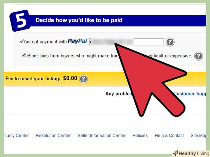 Введіть платіжну інформацію та вартість доставки, натисніть на кнопку «Continue» (Продовжити). перевірте отриманий лот на наступній сторінці і клікніть «List an item» (створити лот), якщо ви все вказали правильно. Натисніть на кнопку " Edit listing "(редагувати лот), коли з'являється необхідність повернутися назад і щось змінити.