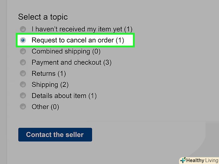 Встановіть прапорець у «попросити про скасування замовлення". ця опція знаходиться в списку причин скасування покупки.