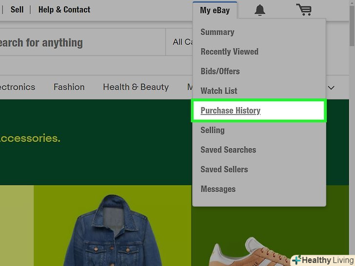 Клацніть поІсторія покупок . ця опція знаходиться в меню. На екрані відобразиться список всіх ваших недавніх покупок на eBay.