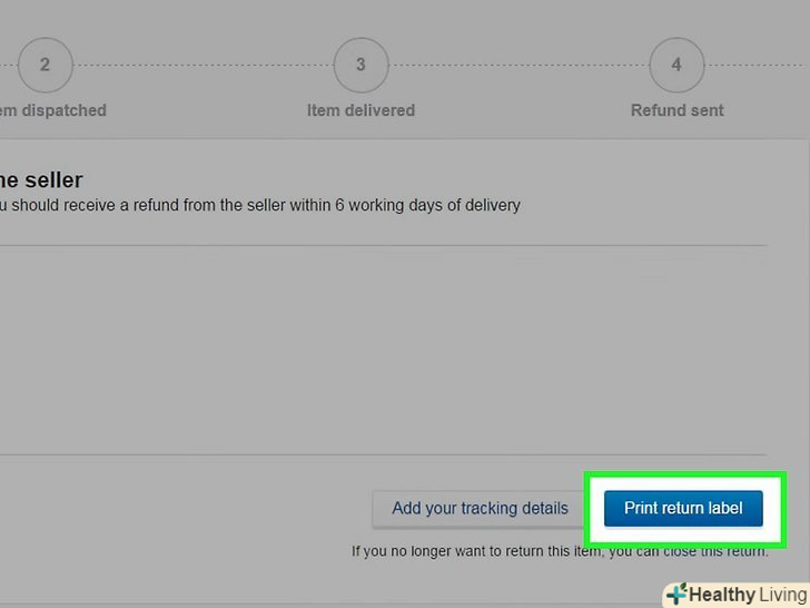 Поверніть товар протягом 5 робочих днів. якщо продавець погодився відшкодувати вам гроші, поверніть товар продавцю протягом 5 робочих днів. Якщо товар пошкоджений або несправний, продавець повинен оплатити зворотну доставку товару. Якщо ви передумали купувати товар, за зворотну доставку заплатите ви (якщо умови повернення продавця не мають на увазі інше). Ретельно упакуйте товар. Щоб надрукувати етикетку для зворотної доставки товару, виконайте наступні дії: [2]- Натисніть "мій eBay".