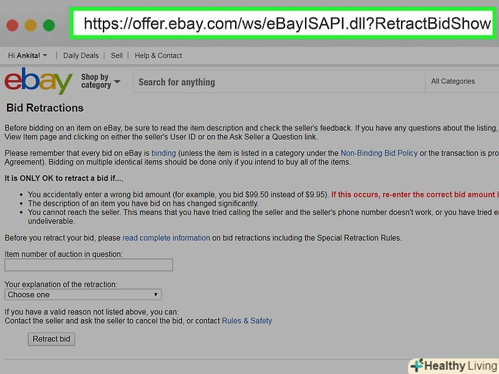 З'ясуйте, чи є у вас право відкликати ставку. як правило, eBay не дозволяє скасовувати ставки на торгах. Якщо ви розмістили ставку і виграли аукціон, за правилами eBay ви зобов'язані купити товар. Але в деяких випадках ставку можна відкликати:- Ви ввели неправильну суму (наприклад, 100 рублів замість 10 рублів), тому що додали зайвий нуль.