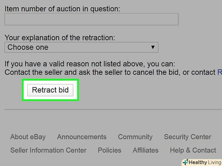 Зв'яжіться з продавцем, якщо eBay відхилив ваш запит на скасування ставки. зробіть це, щоб спробувати відкликати ставку — в цьому випадку все залежить від продавця (він може погодитися задовольнити ваше прохання, але може і відмовити). [3]