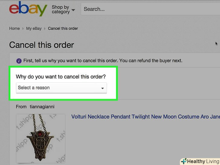 Виберіть причину скасування покупки. для цього встановіть прапорець у відповідної опції.- Якщо про скасування покупки попросив покупець, обов'язково вкажіть це в якості причини, щоб Ваш рейтинг не знизився.
