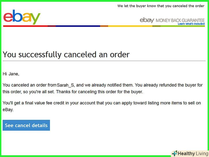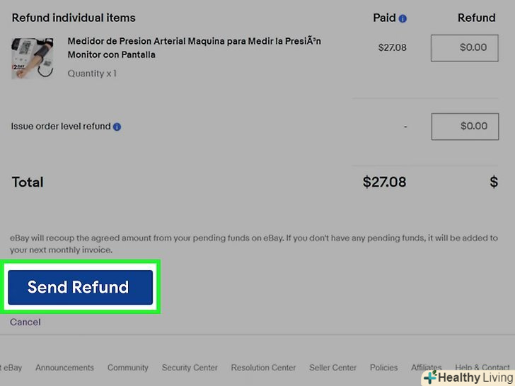 Клацніть поВідправити . eBay відправить продавцю ваш запит на скасування покупки і підтвердить, що продавець ще не відправив товар. Якщо скасування схвалено, Ви отримаєте повідомлення по електронній пошті.- Якщо скасувати покупку не вийшло, подайте заявку на відшкодування коштів, як тільки отримаєте товар.