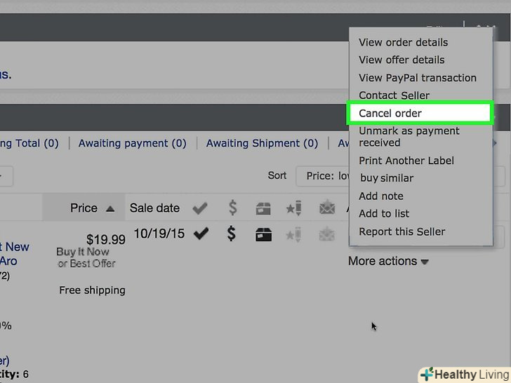 Клацніть поПродано . ця опція знаходиться в меню під «мій eBay».- У вас є три дні, щоб схвалити або відхилити запит Покупця на скасування покупки. Покупець, який відправив запит на скасування покупки у відведений час, не має права залишити вам негативний відгук.