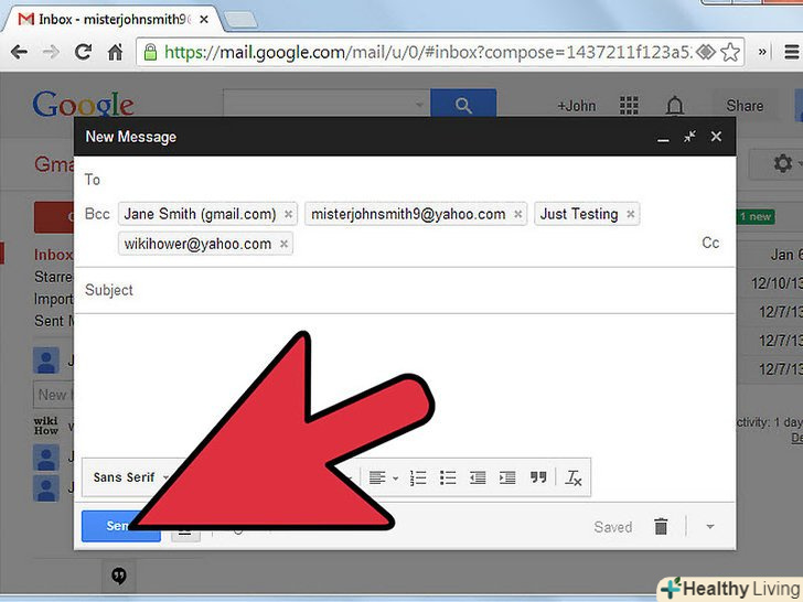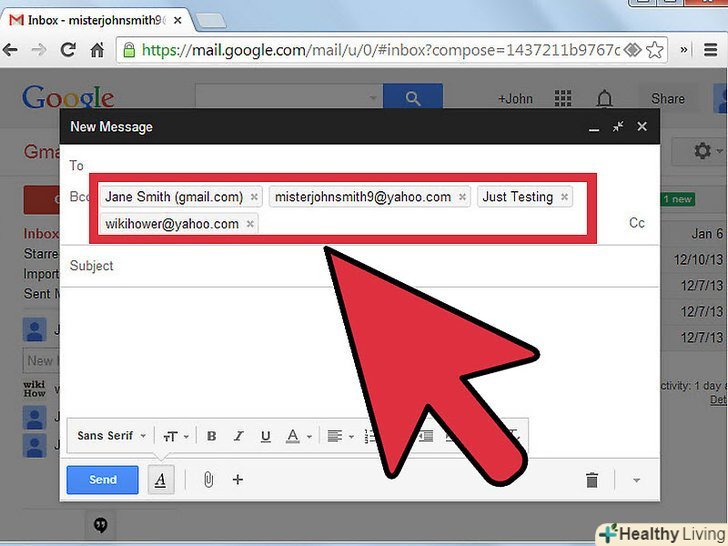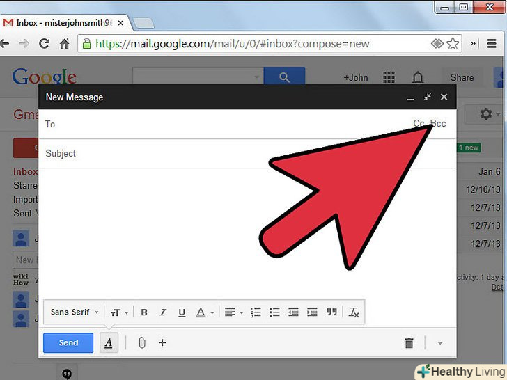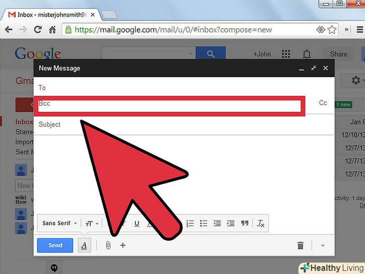Зробіть видимим поле введення Bcc. зазвичай, за замовчуванням воно приховано, але дістатися до нього дуже легко.- Створіть новий лист, потім клікніть по посиланню Доб. Bcc, що знаходиться під полем Кому