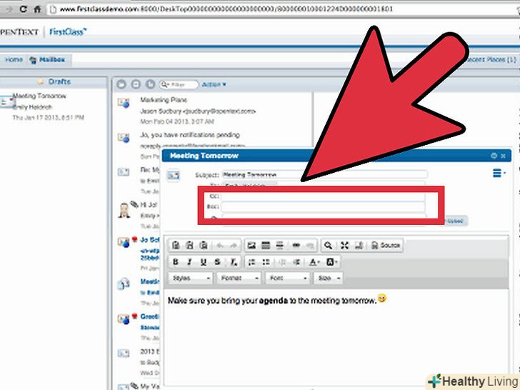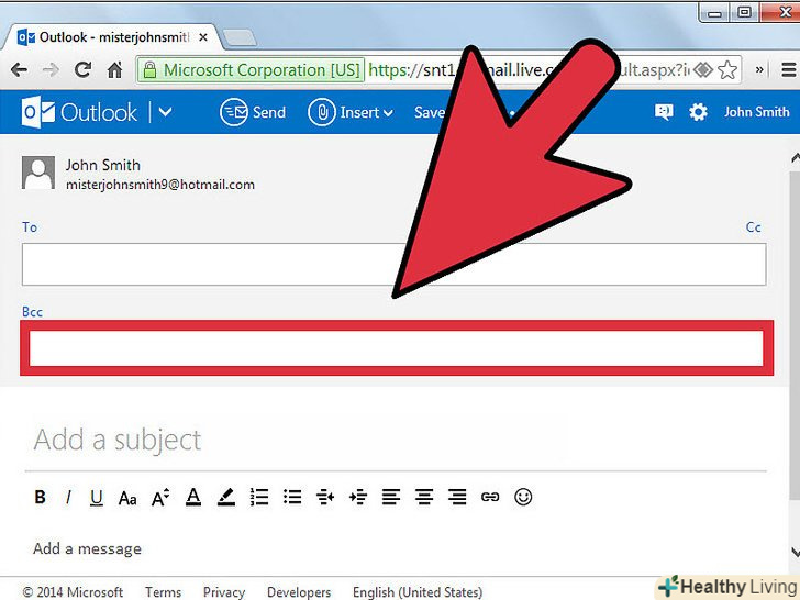 Зробіть видимим поле введення Bcc. зазвичай, за замовчуванням воно приховано, але дістатися до нього дуже легко.- Коли вікно нового листа вже відкрито, виберіть пункт меню "message«, потім клікніть по» show BCC" або просто натисніть Ctrl +B.