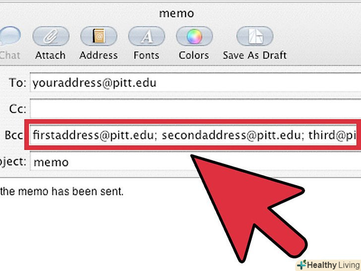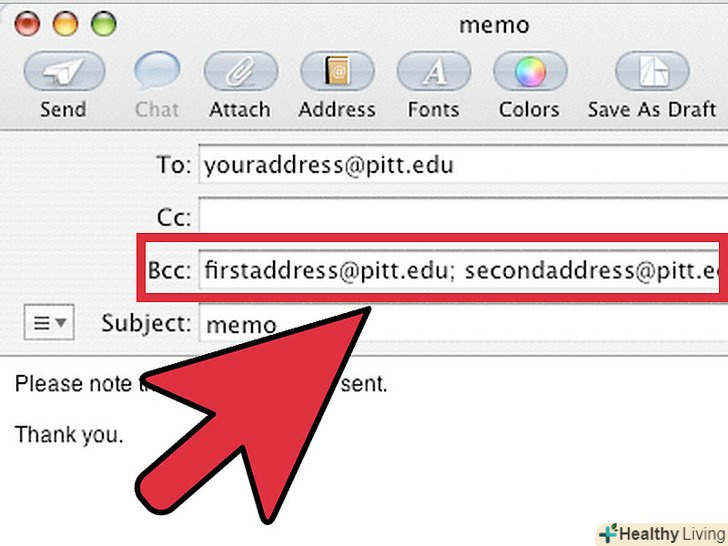 Зробіть видимим поле введення Bcc. зазвичай, за замовчуванням воно приховано, але дістатися до нього дуже легко.- Створіть новий лист у Mac OS X Mail. Виберіть пункт менюВид і виберіть пункт Скр. копія . Ця настройка зберігається, поки ви її не зміните.