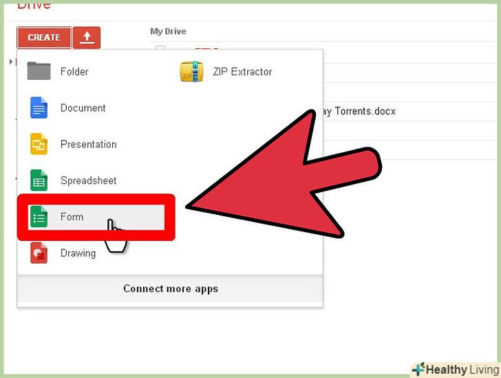 Якщо ваш вхід був успішним, ви будете перенаправлені на сторінку Google Drive. натисніть кнопку Create, і виберіть опцію Form.Шаблон: br