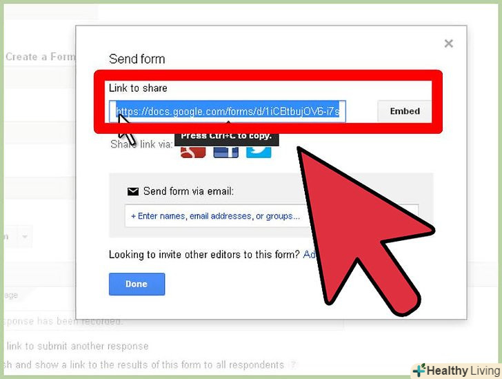 Ви можете продовжувати додавати поля і редагувати попередні поля. коли закінчите, натисніть кнопку Save, розташовану в правому верхньому куті.Шаблон: br- Ви можете дати іншим людям посилання на свою форму. посилання буде розташована в нижній частині екрана.Шаблон: br