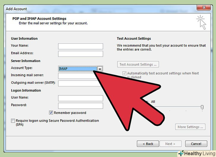 Виберіть «IMAP» в меню «Тип». це найпоширеніший протокол для доступу до електронної пошти.- Усунення неполадок. якщо це не спрацювало, в меню «Тип» виберіть «POP».