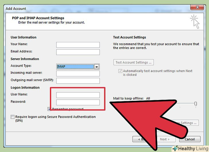Увімкніть опцію «Доступ по IMAP". у цьому випадку поштова служба буде відправляти копії листів в Outlook. Тепер можна налаштувати Outlook.- Якщо ви не бачите опції «Доступ по IMAP", з'ясуйте, на якій вкладці вона знаходиться. Для цього в пошуковій системі (наприклад, в Google або «Яндекс») введіть «lt;ім'я вашої поштової службиgt; + включити IMAP» (без лапок).