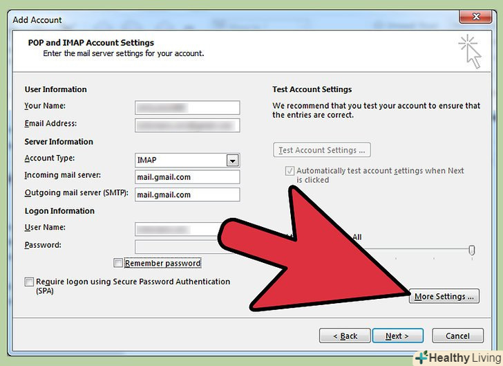Натисніть "Додаткові параметри «і в розділі» аутентифікація «виберіть»використовувати інформацію про вхідному сервері". робити це не обов'язково, але така настройка забезпечить стабільну роботу Outlook. [4]