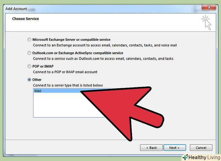 Виберіть «облікові записи» внизу меню «Інструменти". так ви отримаєте можливість додати свою поштову скриньку.- Усунення неполадок. у Windows 8 і новішої версії відкрийте панель Charms, натиснувши Window + C. На цій панелі натисніть «Параметри» gt; «облікові записи» gt; «Додати обліковий запис».