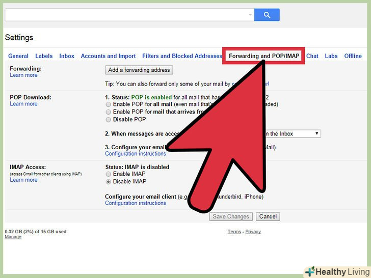 Перейдіть на вкладку «пересилання» на сторінці налаштувань. Ім'я цієї вкладки може бути іншим, наприклад таким:- «пересилання та POP / IMAP"