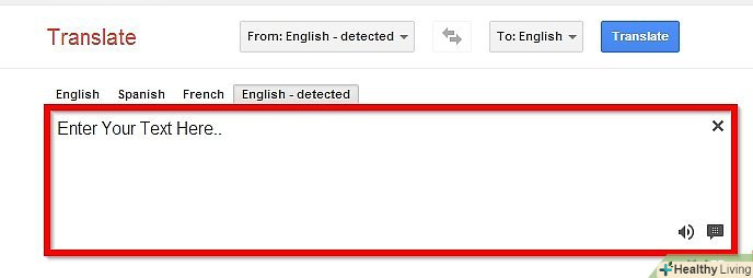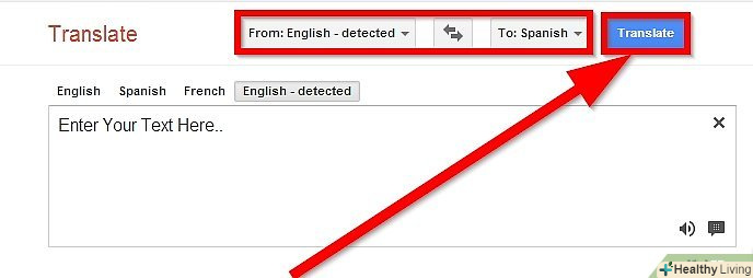 Там ви побачите текстове поле. введіть текст, який ви бажаєте перекласти. В областях, розташованих вище текстового поля, виберіть мови, з якого і на який буде здійснюватися переклад.
