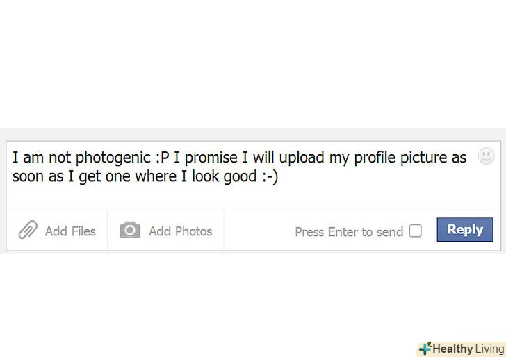 Якщо вас запитають, чому у вас немає фотографій на профілі, скажіть, що ви не фотогенічні. Скажіть, що скоро завантажте фотографії. Скажіть, що у вас немає фотоапарата або фотографуватися вам забороняють батьки. Придумайте правдоподібну відмовку.