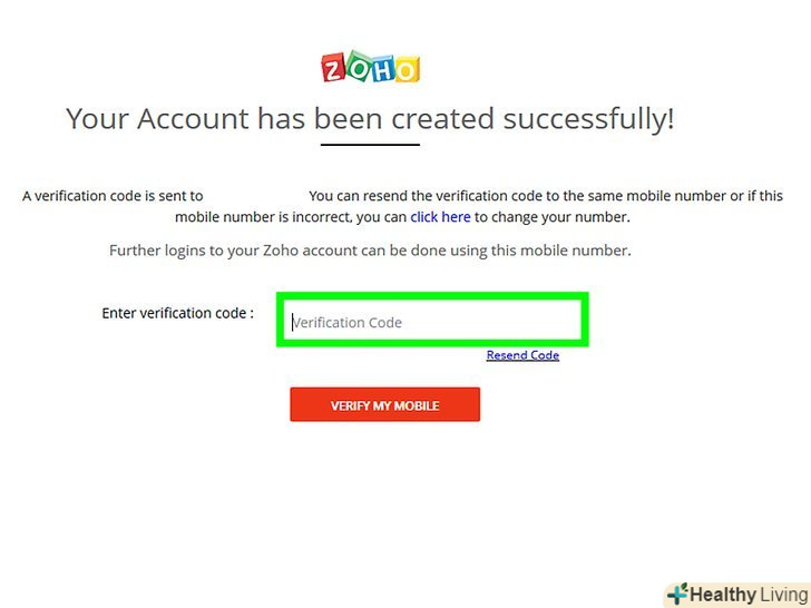 НатиснітьSign Up (зареєструватися). ця опція знаходиться в нижній частині сторінки. Zoho відправить SMS-повідомлення на ваш номер телефону.