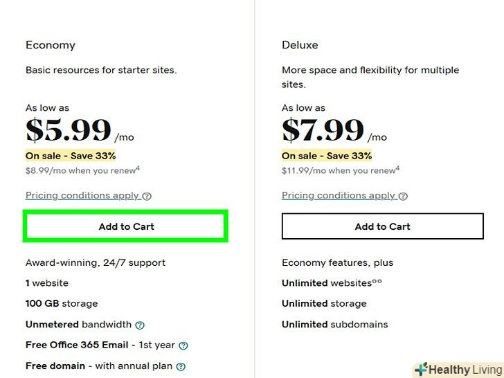 Підпишіться на план обслуговування «економ». для цього:- Прокрутіть вниз і натисніть "Додати в кошик" під "економ".