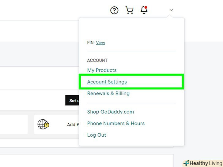 Відкрийте свій аккаунт GoDaddy. перейдіть на сторінку https://www.godaddy.com/, клацніть по значку у вигляді силуету людини в правому верхньому куті сторінки, а потім в меню натисніть «Налаштування облікового запису».[1]
