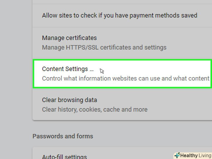 Прокрутіть вниз і натиснітьНалаштування контенту . ця опція знаходиться в нижній частині розділу " конфіденційність і безпека».