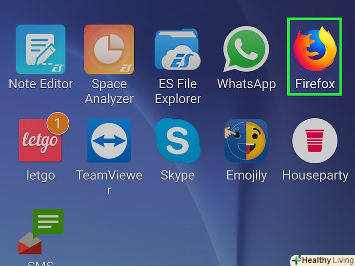 Запустіть Firefox. Значок цього браузера має вигляд синього кулі з помаранчевою лисицею.- JavaScript не можна включити в мобільній версії Firefox, тому що JavaScript за замовчуванням включений в цьому браузері. А ось куки можна активувати на Android-пристрої.