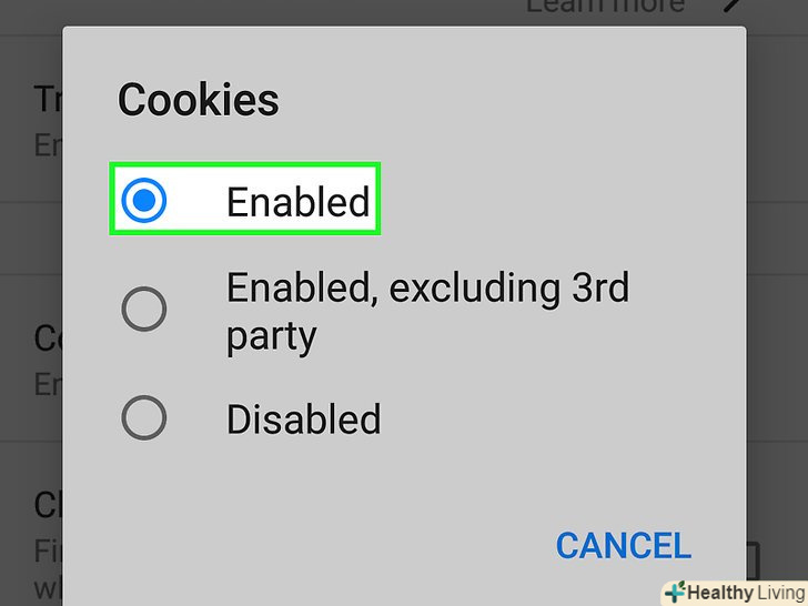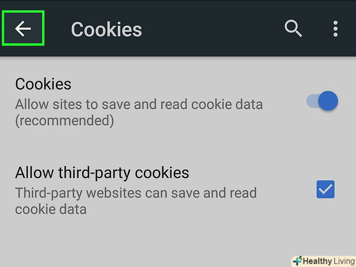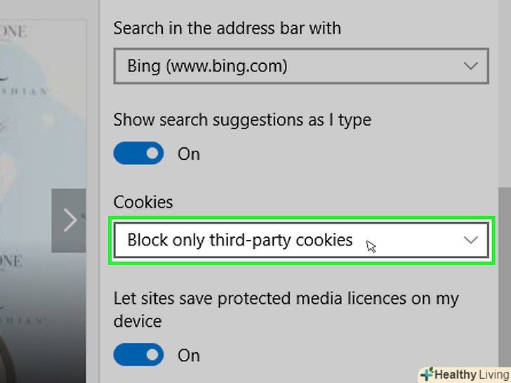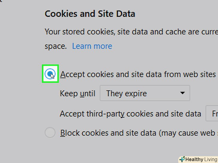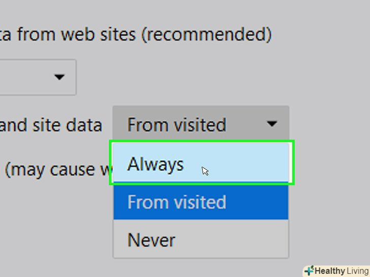 - Також можна встановити прапорець біля "дозволити сторонні файли cookie" у верхній частині екрана, щоб інші веб-сайти могли переглядати ваші куки.
