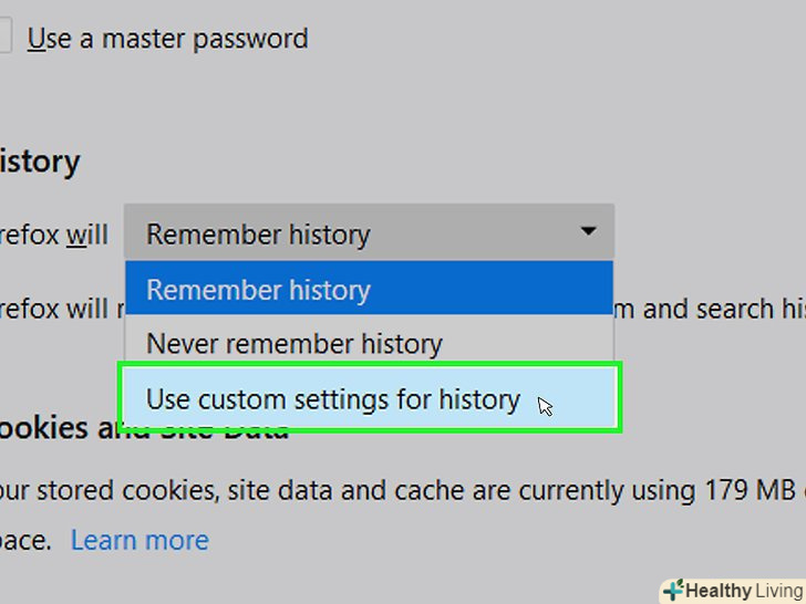 НатиснітьБуде використовувати ваші налаштування зберігання історії . відобразяться додаткові опції.
