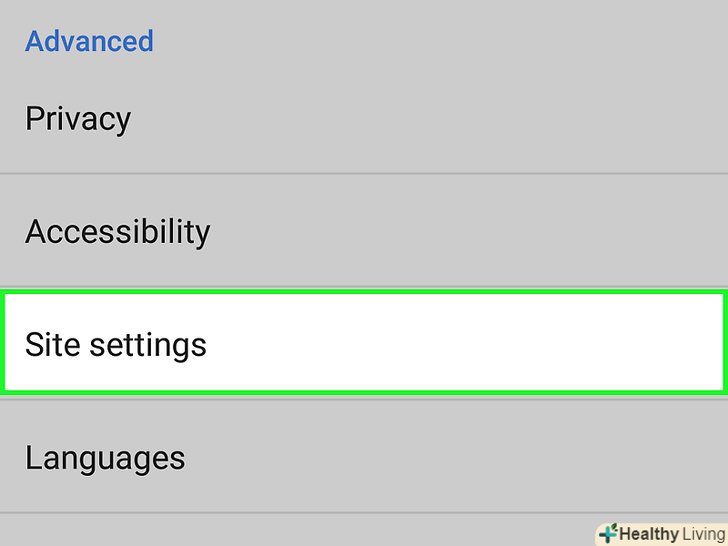 Прокрутіть вниз і натиснітьНалаштування сайтів . ця опція знаходиться в нижній частині екрана.