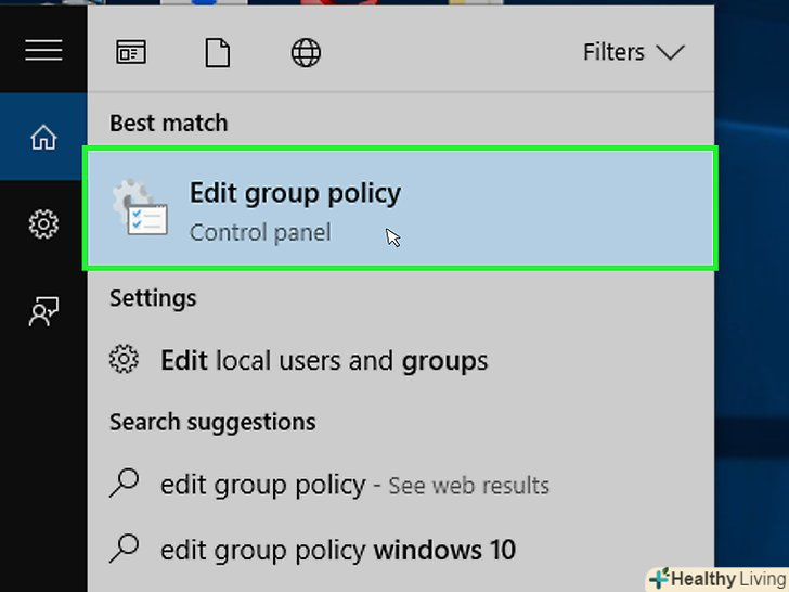 Введіть зміна групової політики в меню "Пуск". почнеться пошук програми «Редактор локальної групової політики».