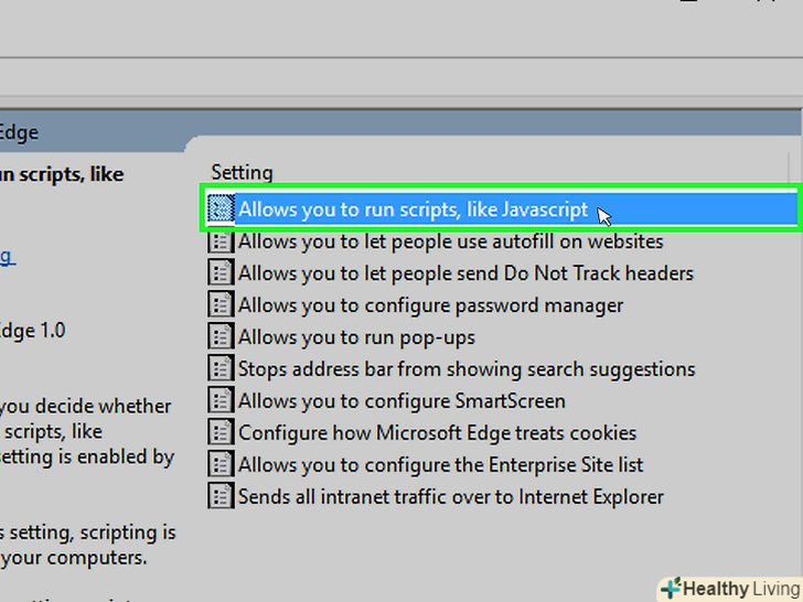 Двічі клацніть поДозволити запускати скрипти, наприклад, JavaScript . відкриється вікно з опціями JavaScript.