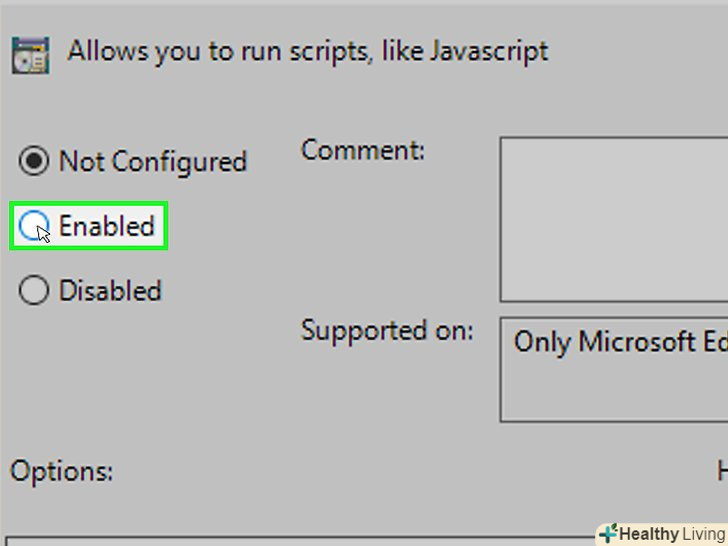 Встановіть прапорець біляВключити . так ви активуєте JavaScript.- Якщо цей прапорець вже встановлено, JavaScript увімкнено.