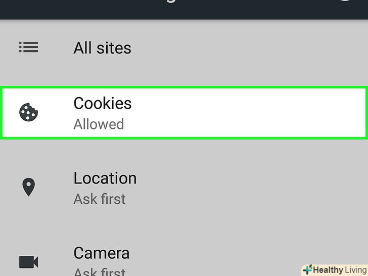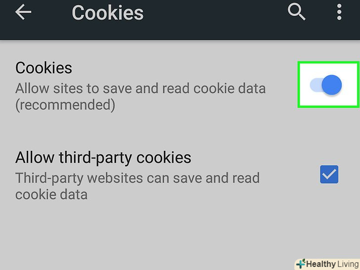 Натисніть на сірий повзуноку «файли соокіе". він стане синім або зеленим
