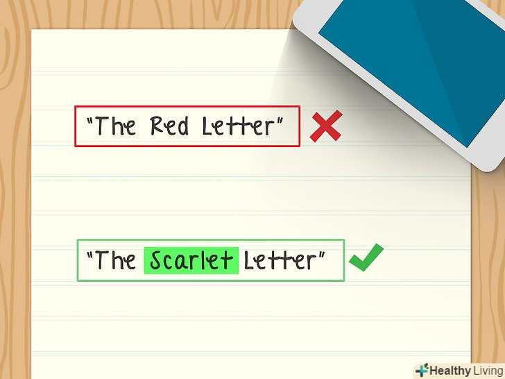Використовуйте іменники та дієслова. імена власні і дієслова дії звучать чітко і конкретно. Вони допомагають зробити назву виразним і незвичайним. Ще раз перегляньте всі назви улюблених книг і виберіть з них найяскравіші. Зверніть увагу на конкретику. Можна замінити загальні слова на кшталт» хлопець«,» дівчина«,» місто " чимось більш конкретним. Як звуть цю дівчину або хлопця? Як називається місто? Чи розширить така заміна діапазон трактувань вашої назви?- Наприклад " червона буква». Слово "Червона «набагато цікавіше простого»Червона". "Червона буква" звучить непогано, але вказівка конкретного відтінку червоного дозволяє зробити назву більш запам'ятовується.
