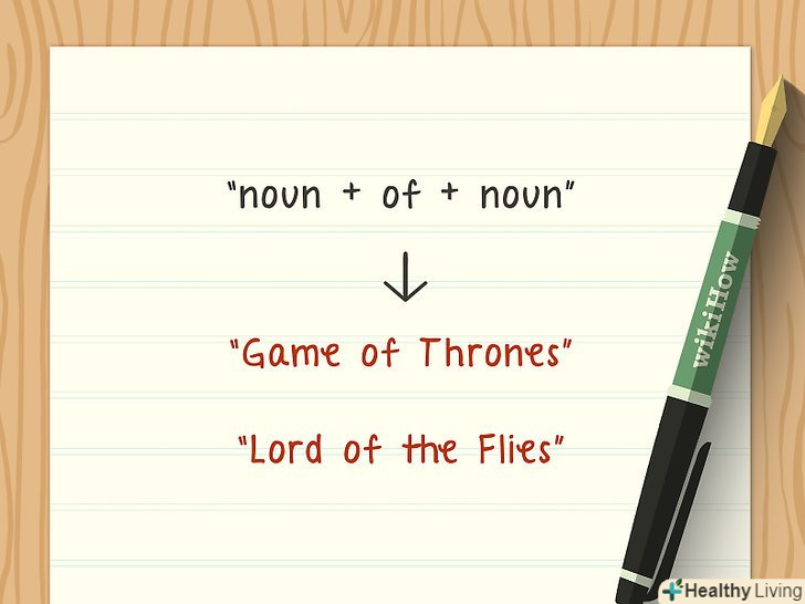 - Більш поширена і часто успішна стратегія-назва з двох слів "іменник + іменник" або» прикметник + іменник «(»Гра престолів«,» Повелитель мух «або»ляльковий будинок").