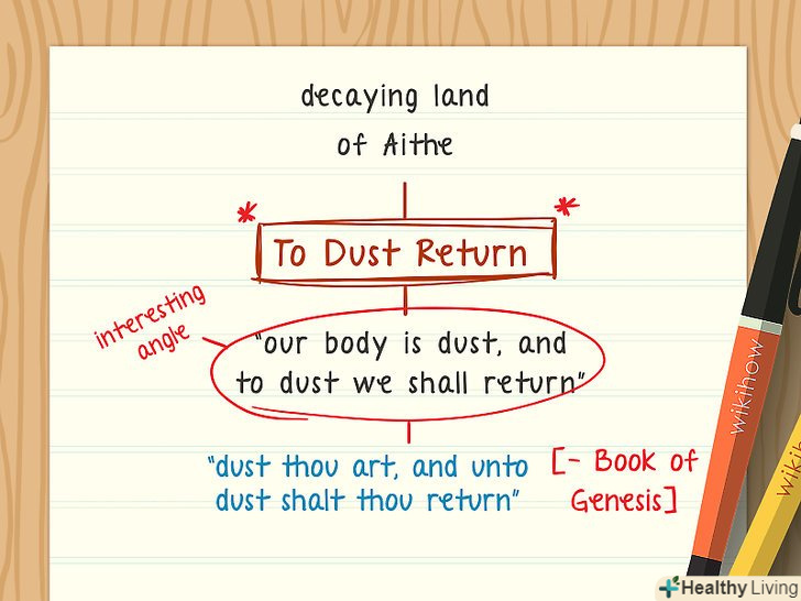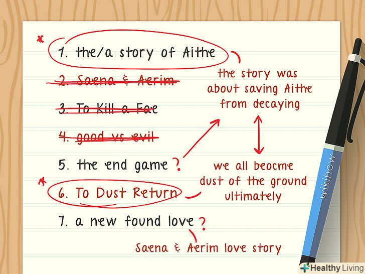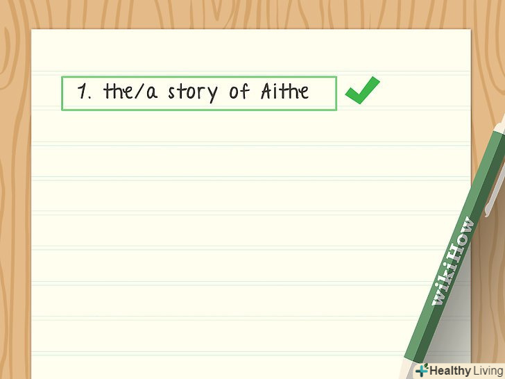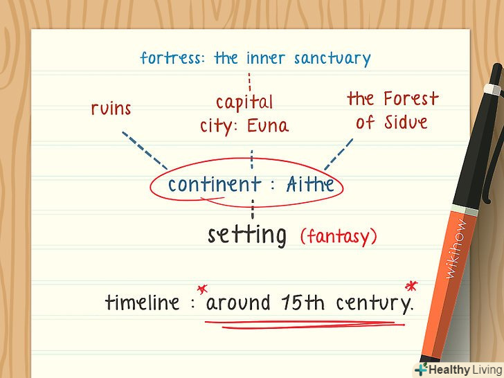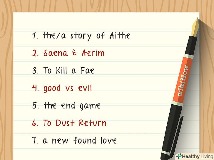 - Спробуйте поєднувати місця, персонажів, теми і активні дієслова.[4]