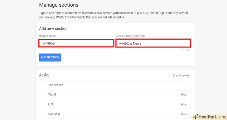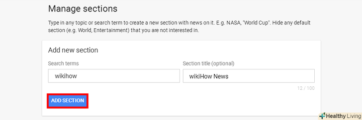 Додайте новий розділ. Введіть будь-які теми, які Вас цікавлять (футбол, Twitter або музика). Додайте назву розділу (необов'язково).