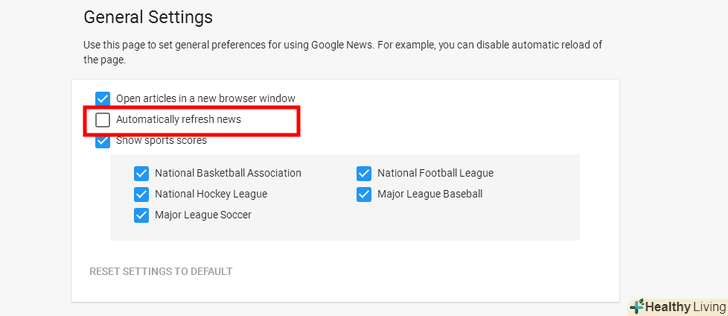 Якщо хочете, вимкніть автоматичне оновлення новин. зніміть галочку з параметра «оновлювати новини автоматично», щоб відключити автоматичне оновлення сторінки.