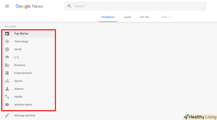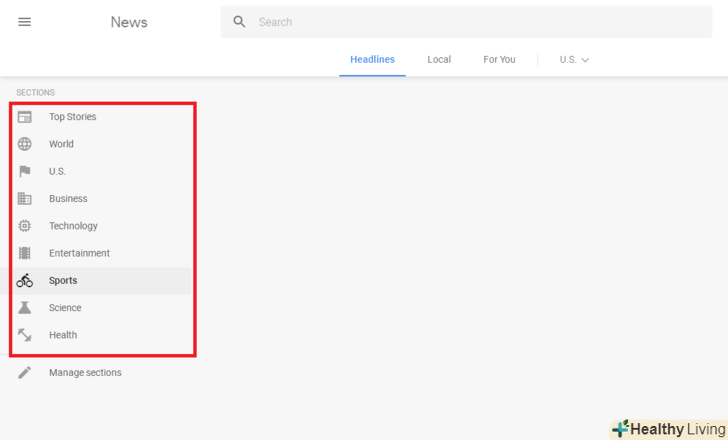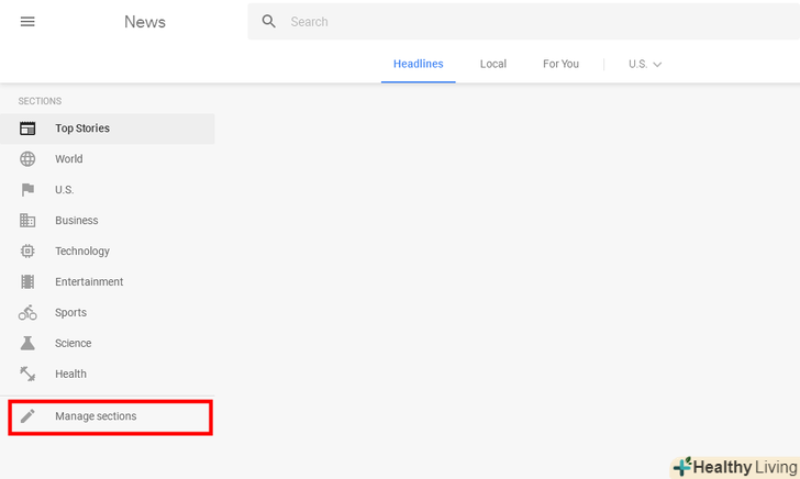 Відкрийте Налаштування розділів. натисніть на «управління розділами» в нижній частині списку розділи. Або перейдіть за адресою: news.google.com/news/settings/sections