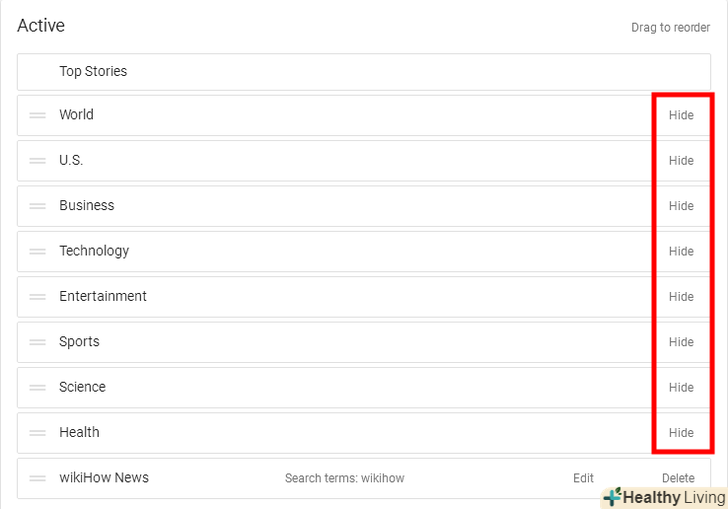 Видаліть або відредагуйте свої розділи. прокрутіть до списку «активні розділи» і натисніть на «приховати», щоб прибрати розділ. Щоб змінити порядок розділів, перетягніть їх нижче або вище.