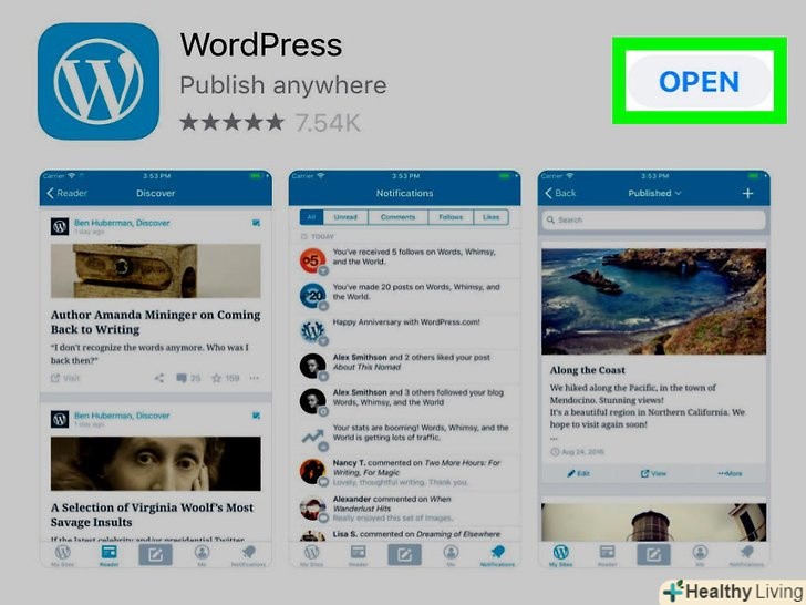 Торкніться піктограми WordPress. на iPhone ви знайдете її в лівому нижньому кутку екрану, а на Android — в лівому верхньому кутку екрану. Так ви відкриєте консоль свого основного блогу на WordPress.