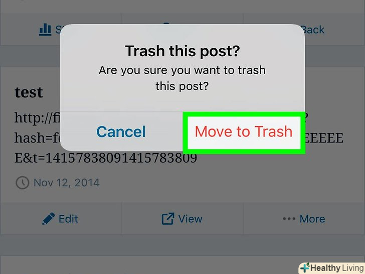 ТоркнітьсяПеремістити в кошик у відповідь на запит. так ви видалите повідомлення з сайту WordPress.- На Android торкнітьсяВидалити у відповідь на запит.