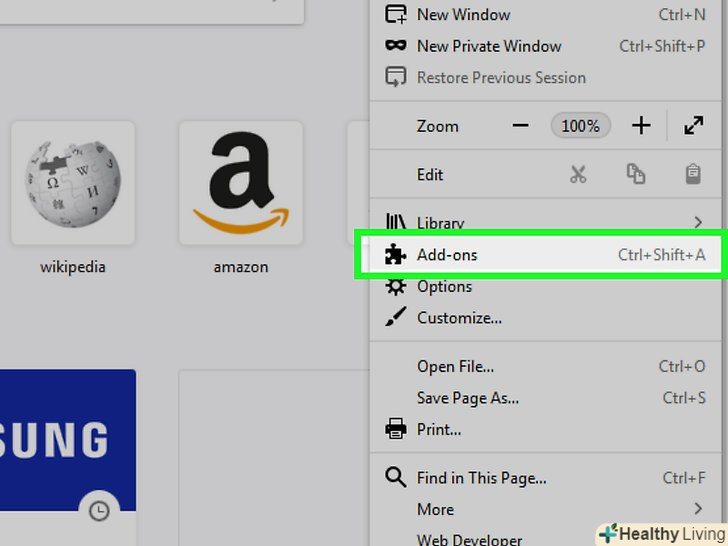 НатиснітьДоповнення . ця опція знаходиться в меню. Відкриється сторінка»Доповнення".