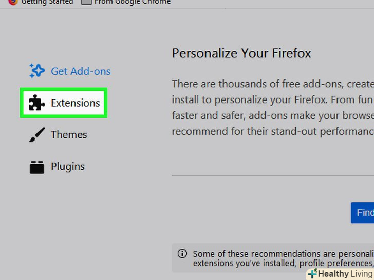 Клацніть по вкладціРозширення . ви знайдете її у верхній лівій частині сторінки.