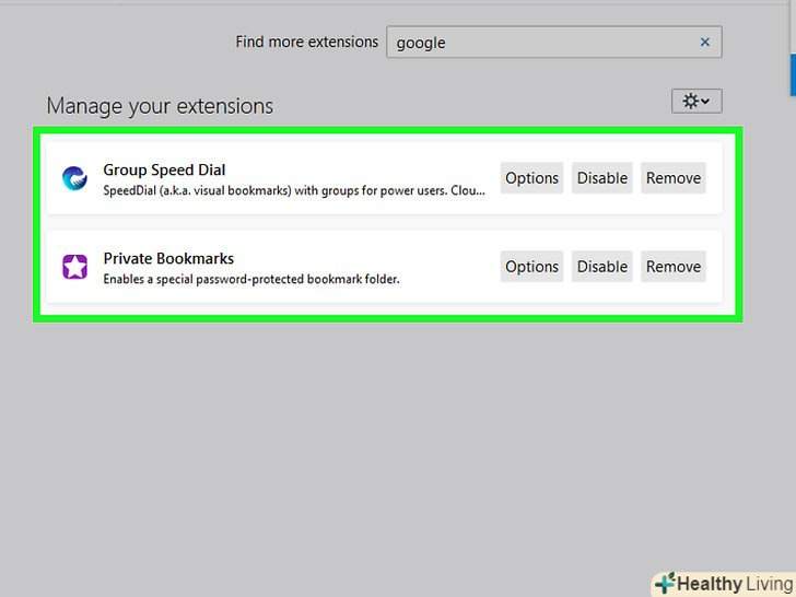 Знайдіть розширення, яке є панеллю інструментів. для цього прокрутіть сторінку вгору або вниз.