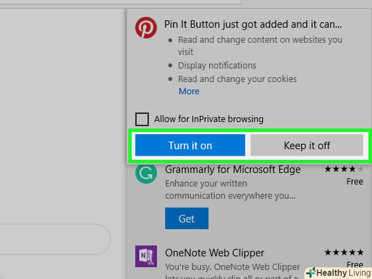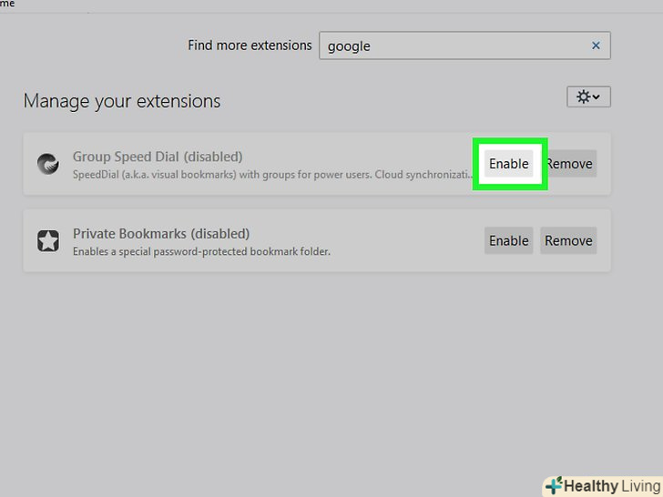 Клацніть поВключити . ця опція розташована праворуч від імені розширення.