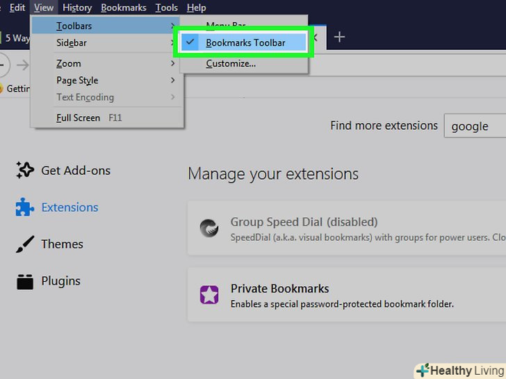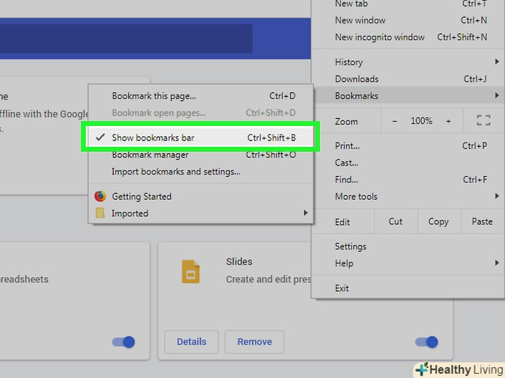 Відобразіть панель закладок. якщо включення панелі інструментів не вирішило проблему, ви, швидше за все, захочете відобразити панель закладок. Для цього:- Натисніть" ⋮»;